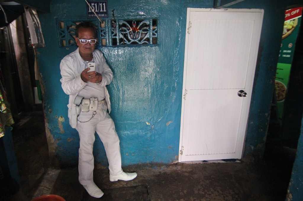 | Nhà của "Bạch công tử" nằm trong con hẻm nhỏ trên đường Tôn Thất Đạm (Q.1). Ông rời nhà lúc 5h30, 9h về nhà mua cơm, lấy phần cơm của mình từ vợ và đến 8h tối mới về. |