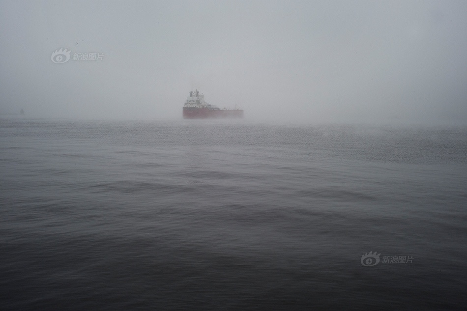 Một con tàu đang rời bến cảng trong màn sương mù dày đặc tại thành phố Duluth, bang Minnesota một ngày tháng 6. Xa lộ Liên bang 35 chạy từ Laredo, Texas tới Duluth, ghi dấu của sự thay đổi người nhập cư đang mang lại cho nước Mỹ. Tuy vậy, tuyến xa lộ kết thúc tại thành phố cảng Duluth, nơi vẫn chưa có nhiều đổi thay trong hàng thập kỷ. |