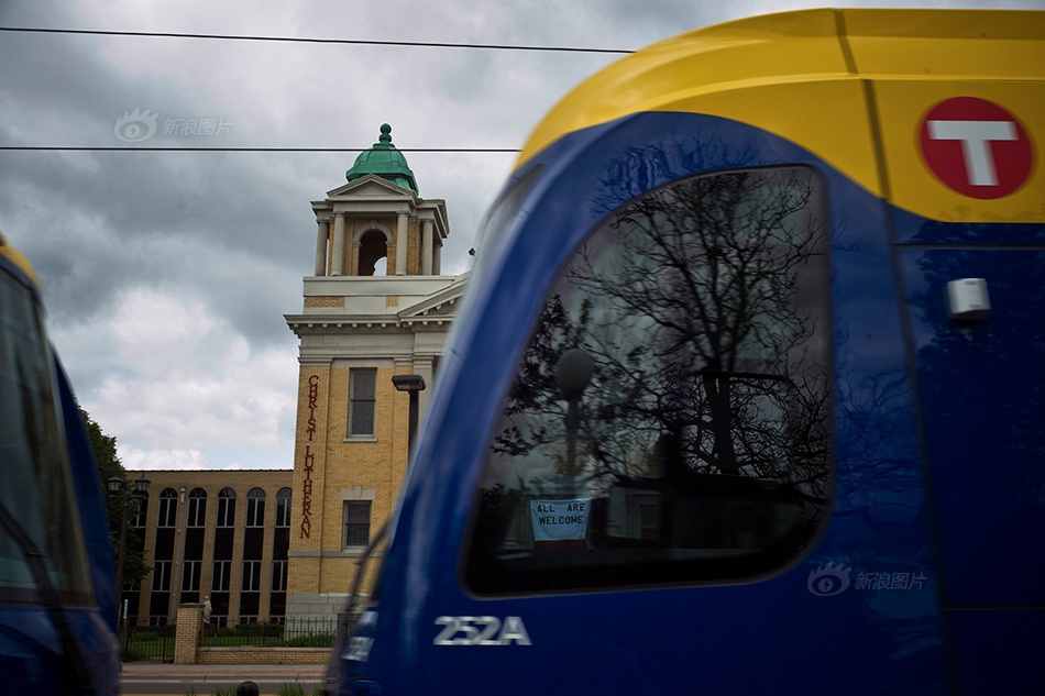 Tàu điện đi ngang qua một nhà thờ dòng Lutheran ở thành phố Minneapolis trong một ngày tháng 6. Bộ ảnh của Todd Heisler, phóng viên của New York Times ghi lại tuyến đường sắt Green Line mới mở, kết nối vùng Twin Cities chạy qua khu vực đa sắc tộc, nơi từng tập trung chủ yếu người vùng Scandinavia và Trung Âu, nhưng nay có đông dân cư đến từ Somalia, Lào, Mexico… |