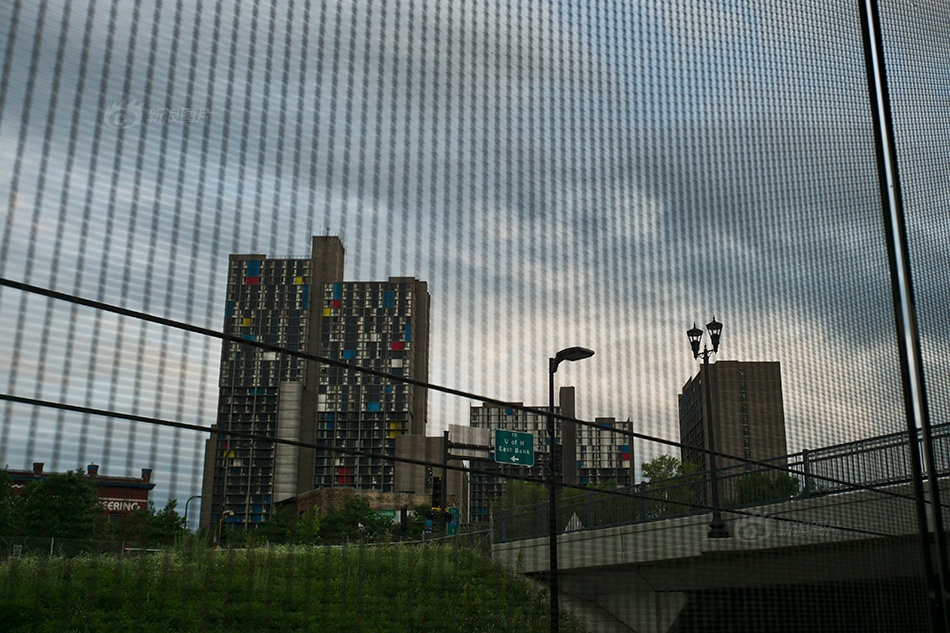Tàu điện chạy qua khu căn hộ đồ sộ Riverside Plaza tại thành phố Minneapolis. Khu vực Riverside ngày nay là nơi cư ngụ của rất nhiều gia đình Somalia và Ethiopia. Một vài người trong số họ từng gặp khó khăn trong việc hòa nhập, nhất là khi thiếu niên Mỹ hay bắt nạt trẻ em nhập cư. |