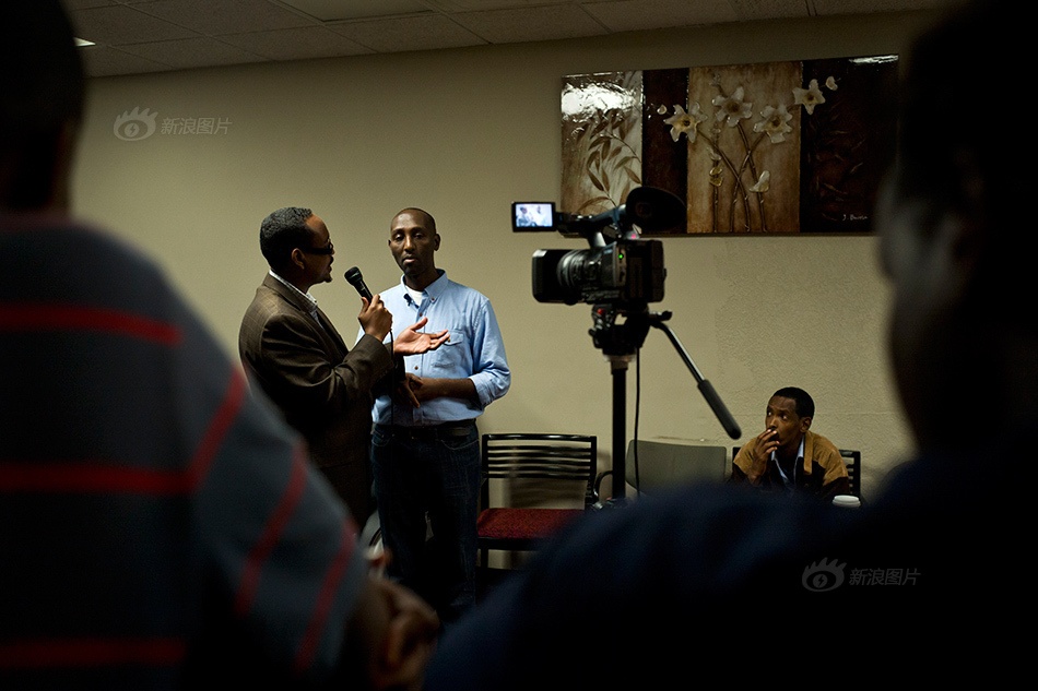 Mohamud Noor thực hiện phỏng vấn cho đài truyền hình Somalia địa phương tại thành phố Minneapolis vào tháng 6. Noor là lãnh đạo của cộng đồng người Somalia đang gia tăng tại tiểu bang phía tây miền trung nước Mỹ này. |
