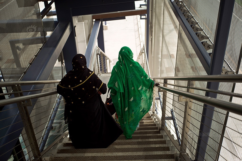 Hai người phụ nữ từ Ethiopia và Somalia bước xuống cầu thang một nhà ga trên tuyến Green Line gần Riverside Plaza, khu căn hộ nhiều cư dân Đông Phi sinh sống tại thành phố Minneapolis. Green Line là tuyến đường sắt nhẹ kết nối hai thành phố Minneapolis và St. Paul, đồng thời mang những người nhập cư lại gần nhau hơn. |