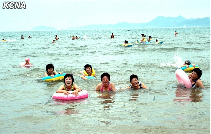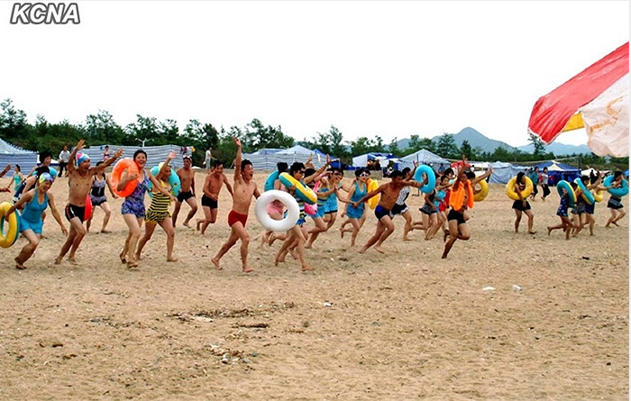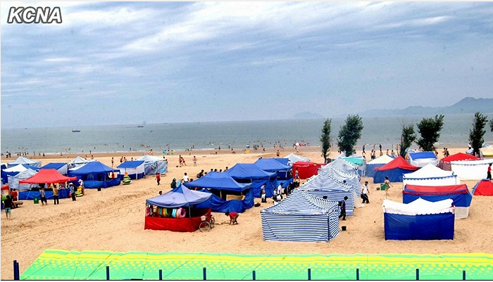 | Người dân Triều Tiên cắm trại trên bãi biển. |