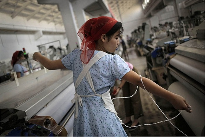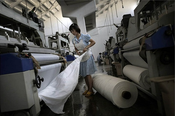 | Bên trong nhà máy dệt Kim Jong Suk tại Bình Nhưỡng, Triều Tiên. |