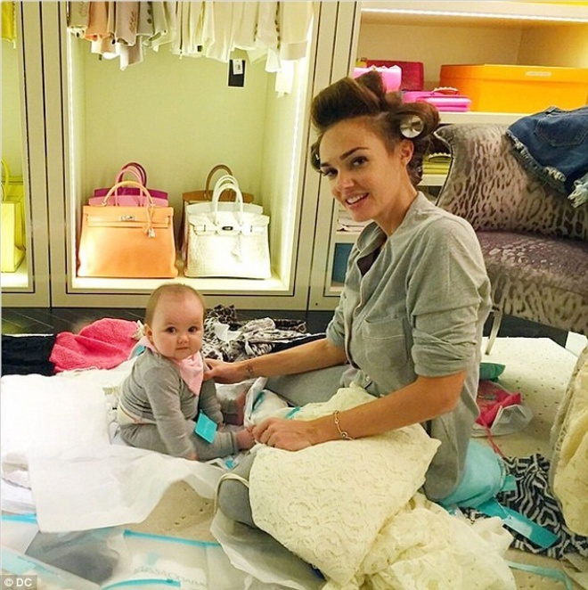 Trong ảnh, cô bé đang chơi đùa cùng mẹ tại phòng thay đồ, với những nhãn hàng nổi tiếng như Hermes hay Dolce & Gabbana. Bé sống trong biệt thư trị giá 70 triệu bảng Anh ở khu phố sang trọng Kensington (Anh).