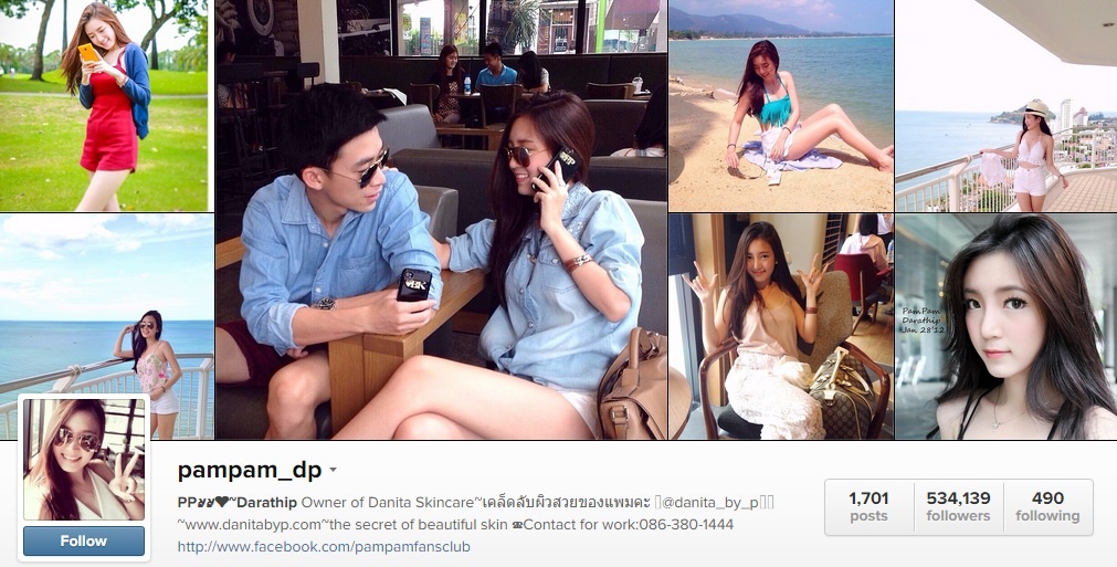| Pampam Darathip - hot girl được mệnh danh là sở hữu vẻ đẹp thuần khiết, tự nhiên bậc nhất xứ sở Chùa Vàng, thường xuyên chia sẻ hình ảnh cá nhân lên Instagram. Cuộc sống sang chảnh cùng những chuyến du lịch nghỉ dưỡng dài ngày ở các danh thắng trong và ngoài nước của hot girl, khiến nhiều cô gái cảm thấy ghen tị. |