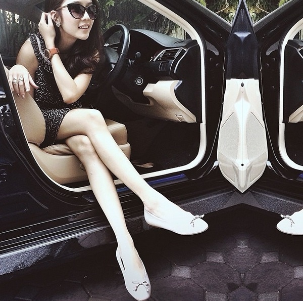 | Không chỉ có nụ cười tỏa nắng, Aom còn được ngưỡng mộ vì phong cách nữ tính, sành điệu, đặc biệt là độ chịu chơi khi thường xuyên đổi xế hộp. |