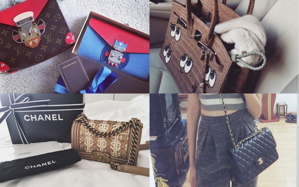 | Cô có loạt túi hiệu như Hermes Birkin màu cam, Lady Dior hồng nude, LV Capucines hồng phấn, LV Capucines 2013, Chanel 2.55... |