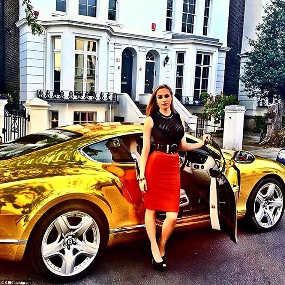 | Tiểu thư kiêu sa bên chiếc xe thể thao bọc vàng. |