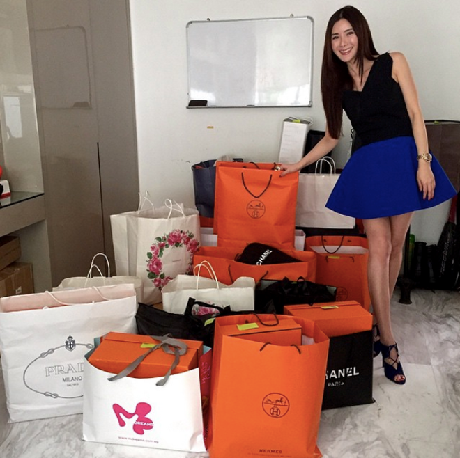 | Kim Lim - con gái của tỷ phú Peter Lim - là hot girl nổi tiếng tại Singapore hiện nay. Xinh đẹp, được thừa kế khối tài sản lớn từ cha, cô hay tổ chức các bữa tiệc xa hoa và có thú sưu tập túi xách hàng hiệu như Hermes, Saint Lauren... |