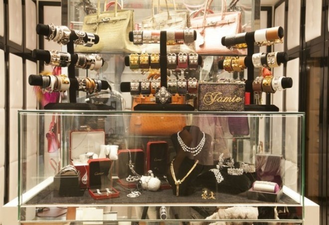 Trong ảnh là tủ phụ kiện của Jamie, chứa những món hàng xa xỉ như vòng đeo tay từ Chrome Hearts, Cartier hay kẹp tóc Alexandre de Paris...