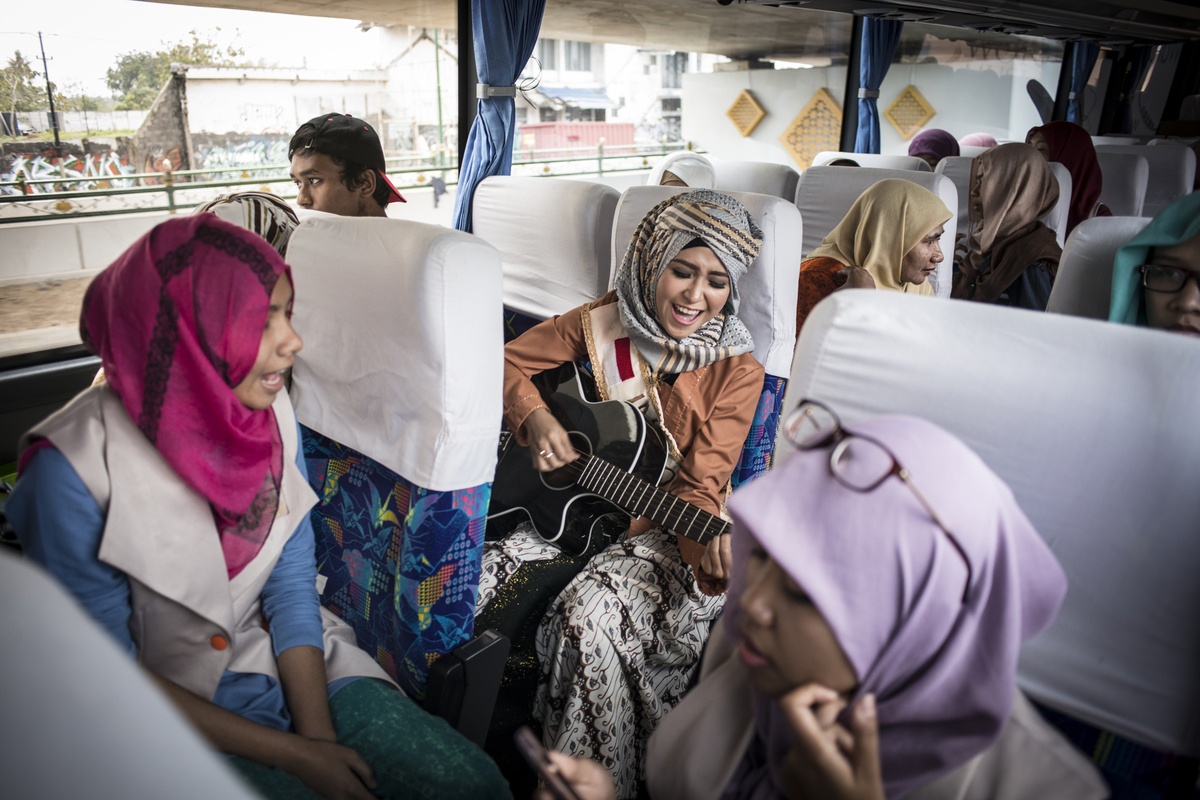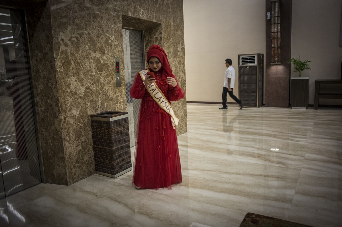 Một buổi dã ngoại của các thí sinh. Người sáng lâp Cuộc thi Hoa hậu Hồi giáo Thế giới là bà Eka Shanty, một cựu phóng viên truyền hình người Indonesia từng mất việc vì không chấp nhận bỏ khăn trùm đầu khi lên sóng. Cuộc thi đầu tiên diễn ra vào năm 2011. 18 cô gái Hồi giáo đẹp nhất sẽ tham dự vòng chung kết. Họ đến từ Indonesia, Tunisia, Malaysia hay Iran.