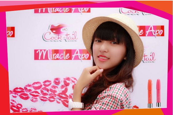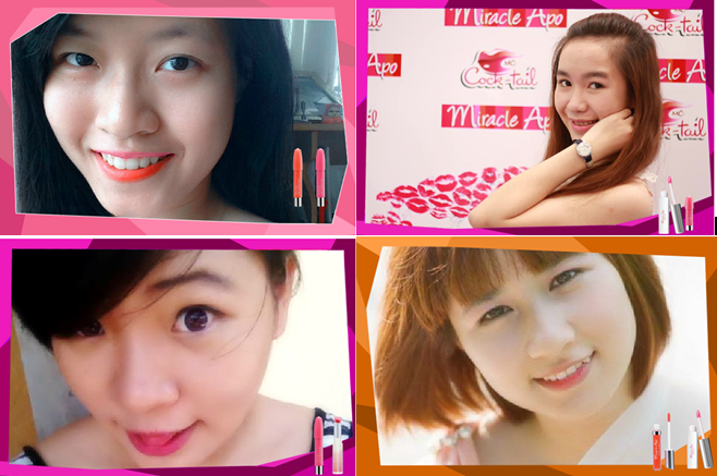 Cao Hoài Phương (Sinh viên năm hai Đại học Bách Khoa) - đạt giải khuyến khích của cuộc thi - chia sẻ: “Trước giờ mình chỉ quen dùng một màu son. Khi tham gia fanpage, mình mới biết có thể phối các màu son với nhau. Mình thích nhất son Miracle Apo Lip Crayon Femme Orange và Shy Pink nên đã phối và gửi ảnh tham gia cuộc thi Sắc môi Cock-tail Miracle Apo, không ngờ lại đạt giải. Mình cảm thấy rất vui”.