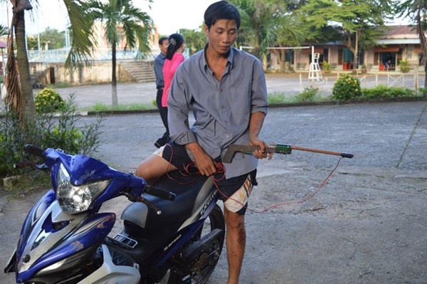 Khi đến khu phố Phước Thiện, dùng súng điện bắn và bắt được một con chó khoảng hơn 10 kg. Vừa bắt xong chó thì bị lực lượng công an truy đuổi.