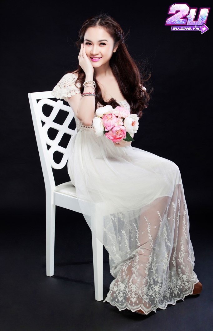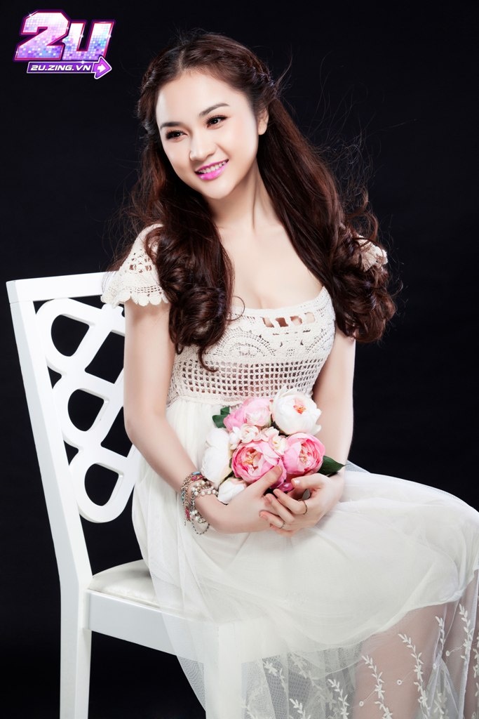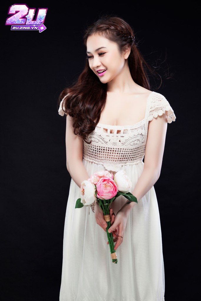 Cô dâu Windy đã rủ bỏ hình ảnh cá tính, “đốt cháy” sân khấu bằng âm nhạc để hóa thân thành cô gái dịu dàng và tha thướt bên chiếc áo cưới trắng tinh khôi. Chiếc áo là nền cho mái tóc buông lơi, làn da trắng tuyết, nụ cười hoa hồng của Windy, giúp nàng trở nên mềm mại và duyên dáng trong những shoot hình cho 2U.