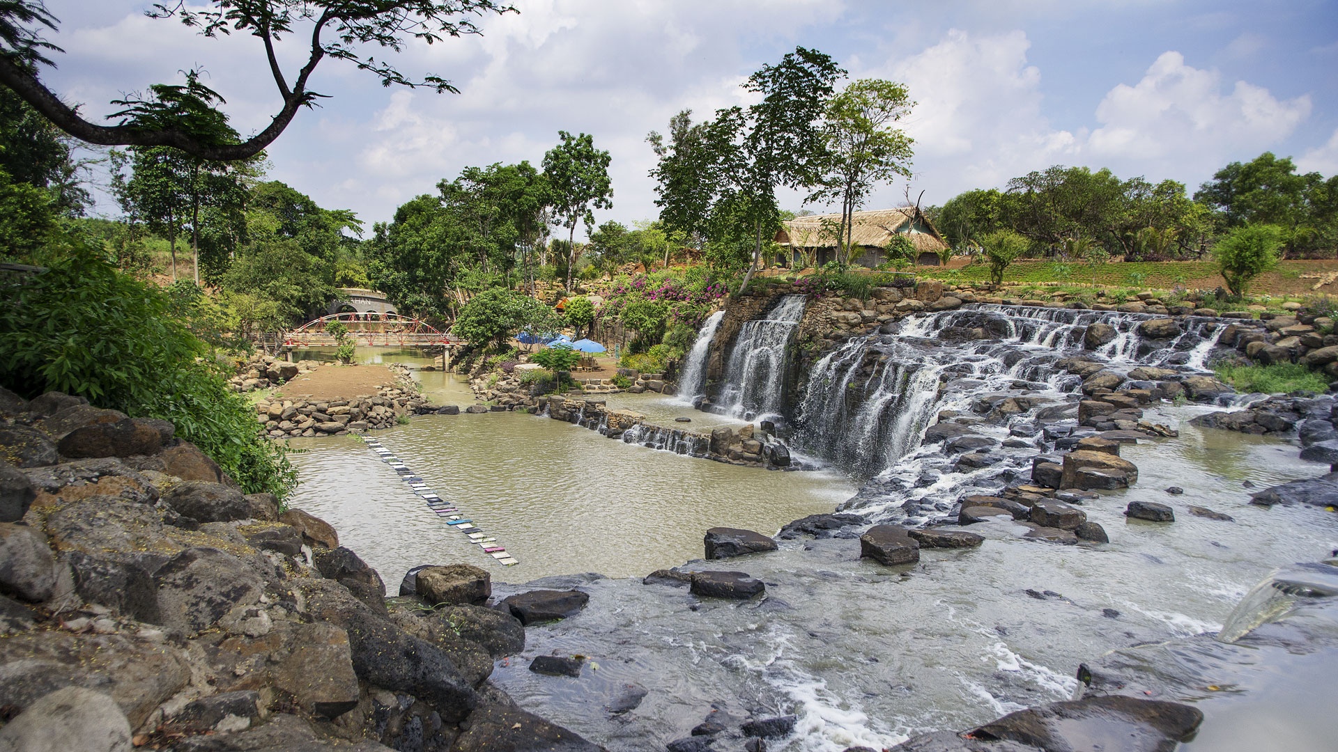 Đoạn đường đến thác không dài, song thời gian chinh phục chưa bao giờ ngắn, vì không ai có thể làm ngơ vị thơm ngon của chôm chôm, sầu riêng, măng cụt, hay làm ngơ những chòi lá đơn sơ với chiếc võng đầy mời gọi.