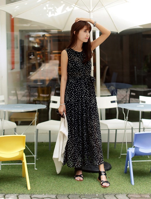 | Maxi đen với họa tiết sao nhí trắng cực nữ tính và duyên dáng. |