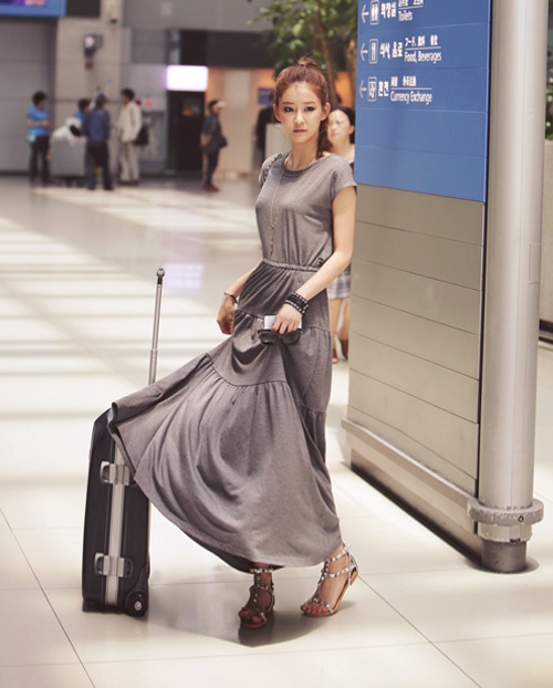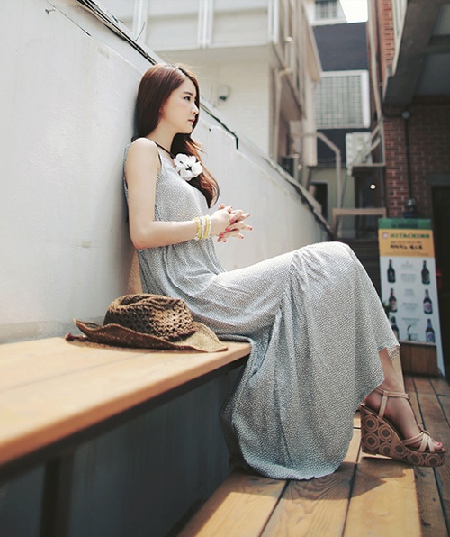 | Phong cách trẻ trung cho mùa du lịch với dép kẹp và maxi dáng suông. |