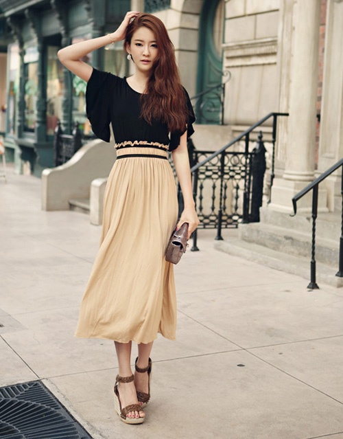 | Maxi cho cuối tuần dự tiệc với phần nối 2 màu duyên dáng. |