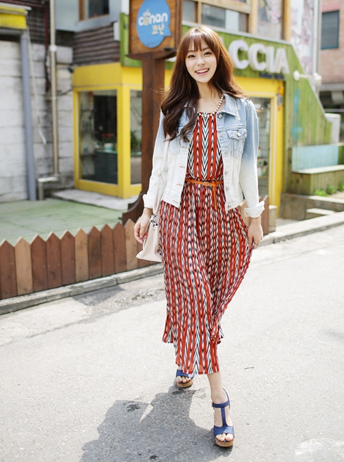 | Maxi mix rất đẹp mắt với áo khoác denim. |