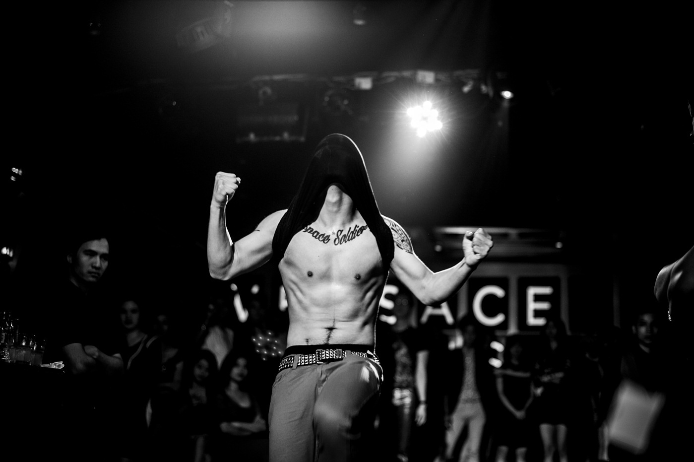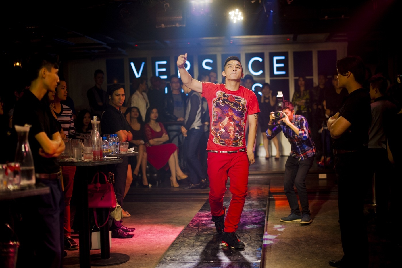 Trong đêm diễn thời trang giới thiệu BST mới của Versace Jeans, lúc quá cao hứng, Cường Seven đã kéo ngược chiếc áo pull màu đỏ lên che mặt. Không chỉ khoe khéo cơ bắp cuồn cuộn, bạn trai cũ của Chi Pu còn để lộ hình xăm lớn trên ngực vào cánh tay. Ngay dưới cổ, anh chàng xăm dòng chữ Space Soldier để thể hiện cá tính của mình.