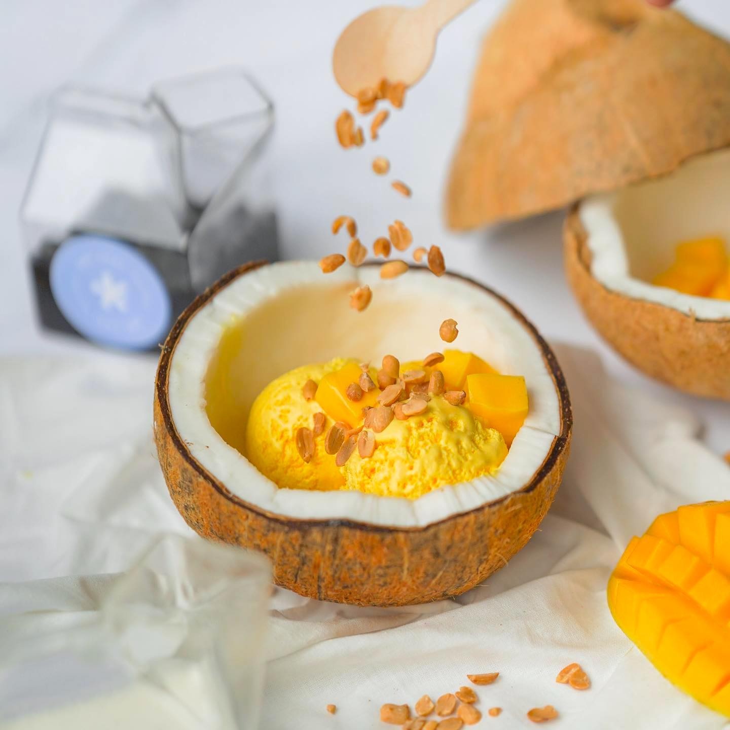| Kem trái cây là sự lựa chọn hàng đầu của nhiều tín đồ ẩm thực vào ngày nắng nóng. Tại tiệm Soi Thai, bạn có cơ hội trải nghiệm các loại kem vị mới lạ như trứng muối, trà thái đỏ. Kem sữa chua vị chanh dây, xoài hoặc dừa cũng là gợi ý hấp dẫn. Anh Kiệt cho biết: "Vị kem béo, hơi ngọt. Thạch trân châu hay thạch trái cây được thêm tùy hương vị bạn lựa chọn". Mỗi phần có giá 35.000 đồng. Ảnh: Soithai.original. |