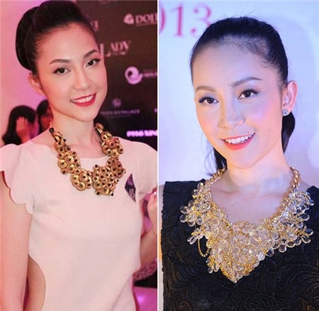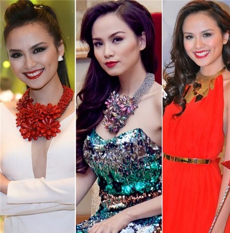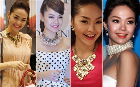 | Hồ Ngọc Hà sở hữu cổ gầy nên vòng cổ to bản rất phù hợp với vóc dáng của cô. Bên cạnh đó cô rất khéo léo lựa chọn từng trang phục phụ kiện đi với nhau để có diện mạo hoàn hảo nhất. |