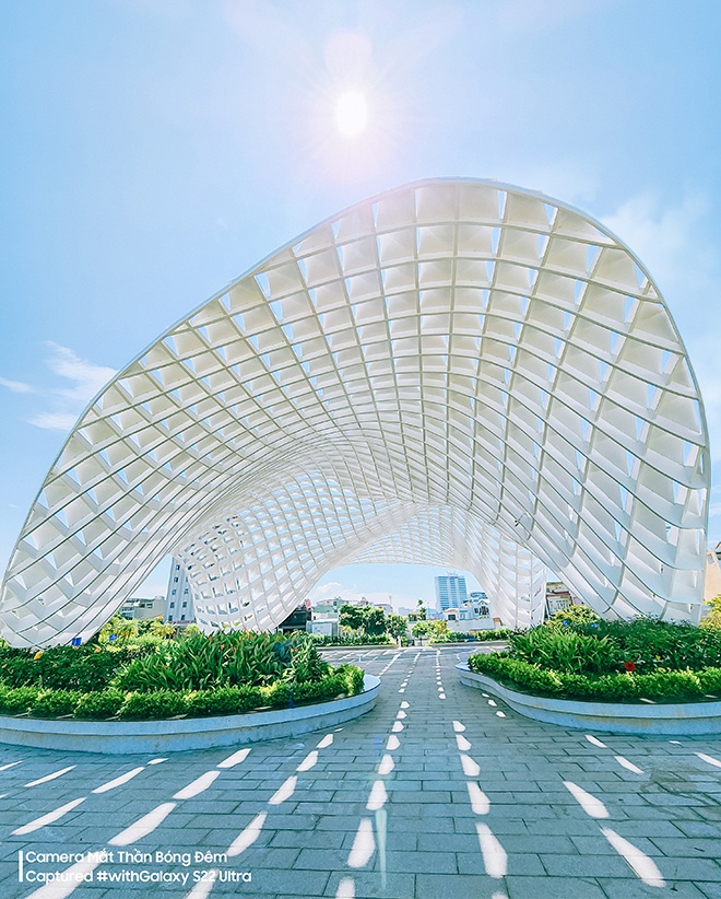 Dưới ánh nắng trong trẻo và qua sự xử lý của camera Galaxy S22 Ultra, mái vòm của công trình tạo nên hiệu ứng ánh sáng độc đáo, trở thành điểm nhấn ấn tượng giữa trung tâm thành phố.