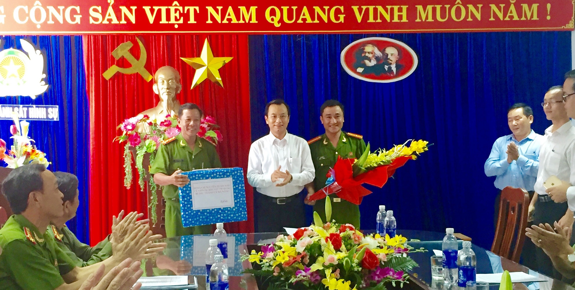 | Ông Nguyễn Xuân Anh tặng quà cho Công an TP Đà Nẵng. Ảnh: Nguyên Vũ. |