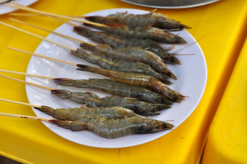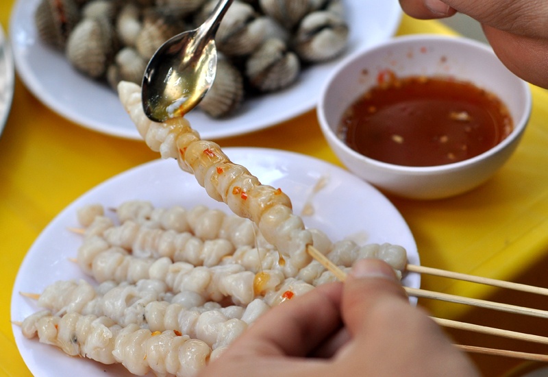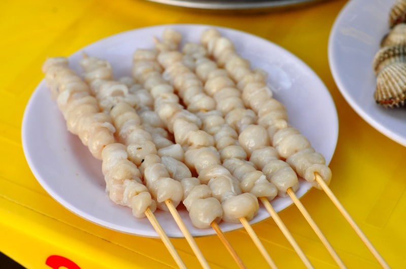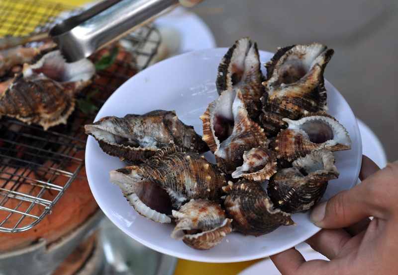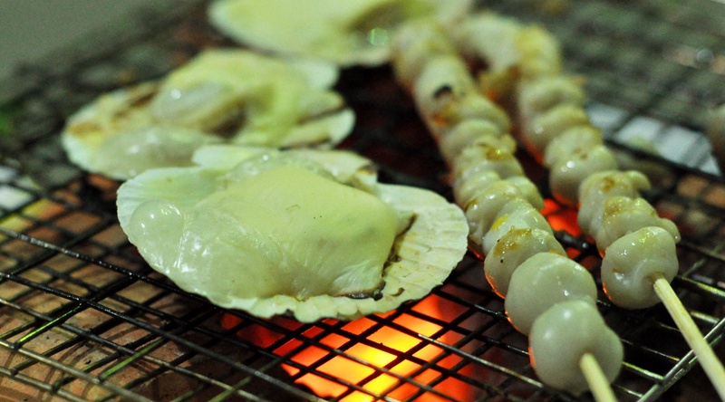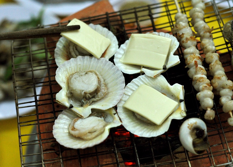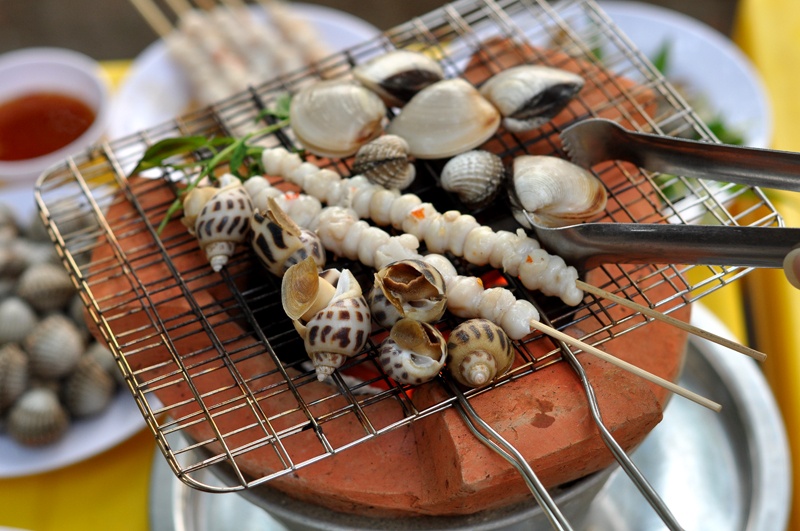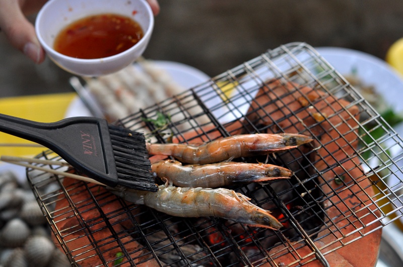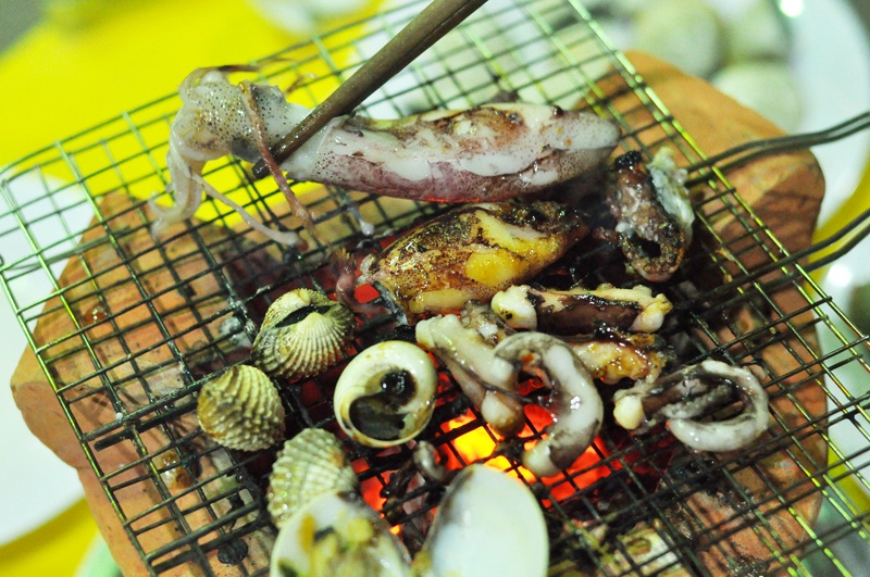 Hải sản nướng lụi.