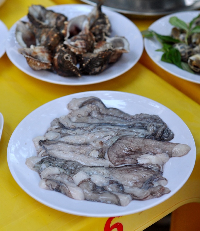 | Các món hầu hết đều đồng giá 60.000 đồng/đĩa. Theo kinh nghiệm thì ngon rẻ nhất là bạch tuộc... |