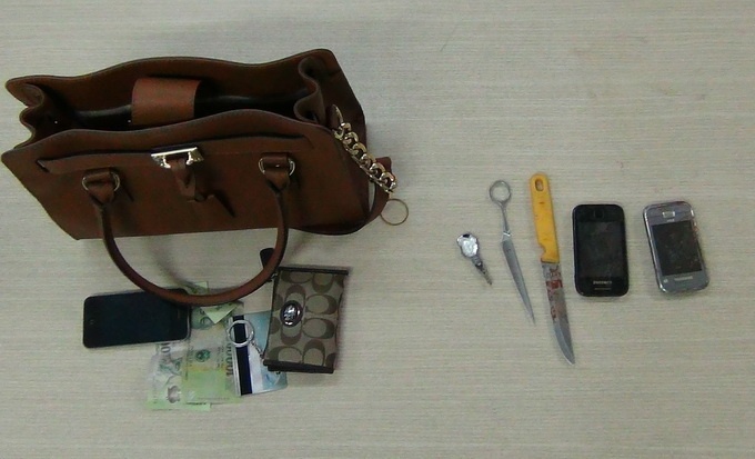 Bị hại trong vụ cướp giật là chị T. (28 tuổi, quận Phú Nhuận). Bên trong giỏ xách của chị T. có một điện thoại iPhone 4s, một bóp nhỏ bên trong có 200.000 đồng và một thẻ ATM.