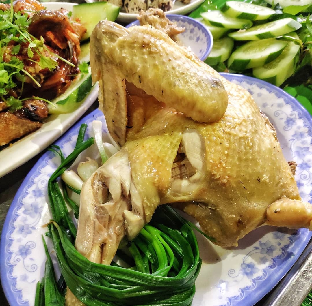 Khu vực quốc lộ 1D nối TP Quy Nhơn (Bình Định) với thị xã Sông Cầu (Phú Yên) tập trung nhiều quán gà chỉ, đặc sản nổi tiếng ở đây. Gọi là gà chỉ do trước đây người ta nuôi gà thả vườn, khách đến ăn thường chỉ chọn gà để chế biến, nên từ đó có tên độc đáo này. Gà chỉ Quy Nhơn có thể hấp hành, chiên mắm, nấu lá giang... ăn kèm xôi chiên, cháo, cơm... Ảnh: Hiquynhon. |