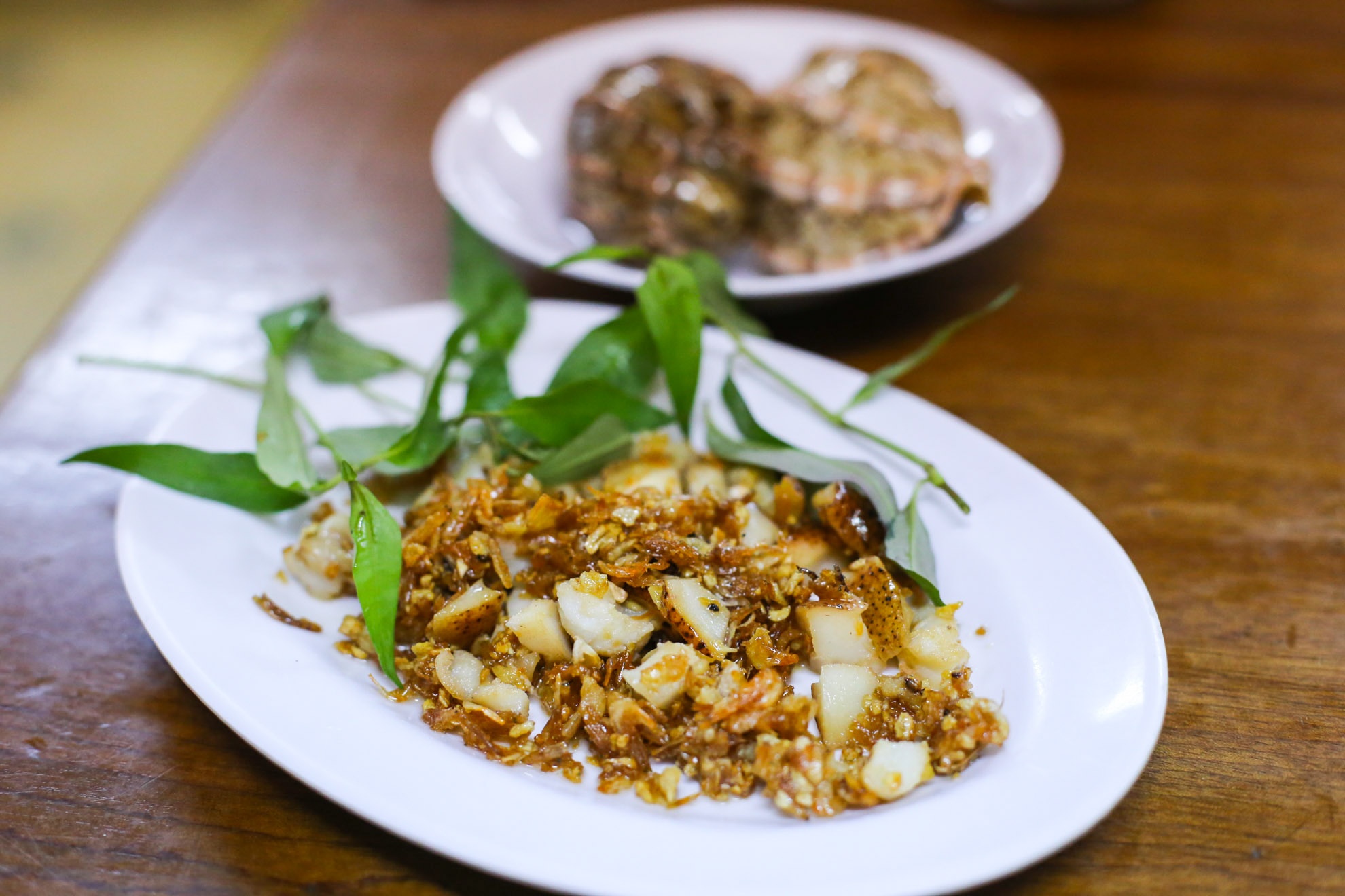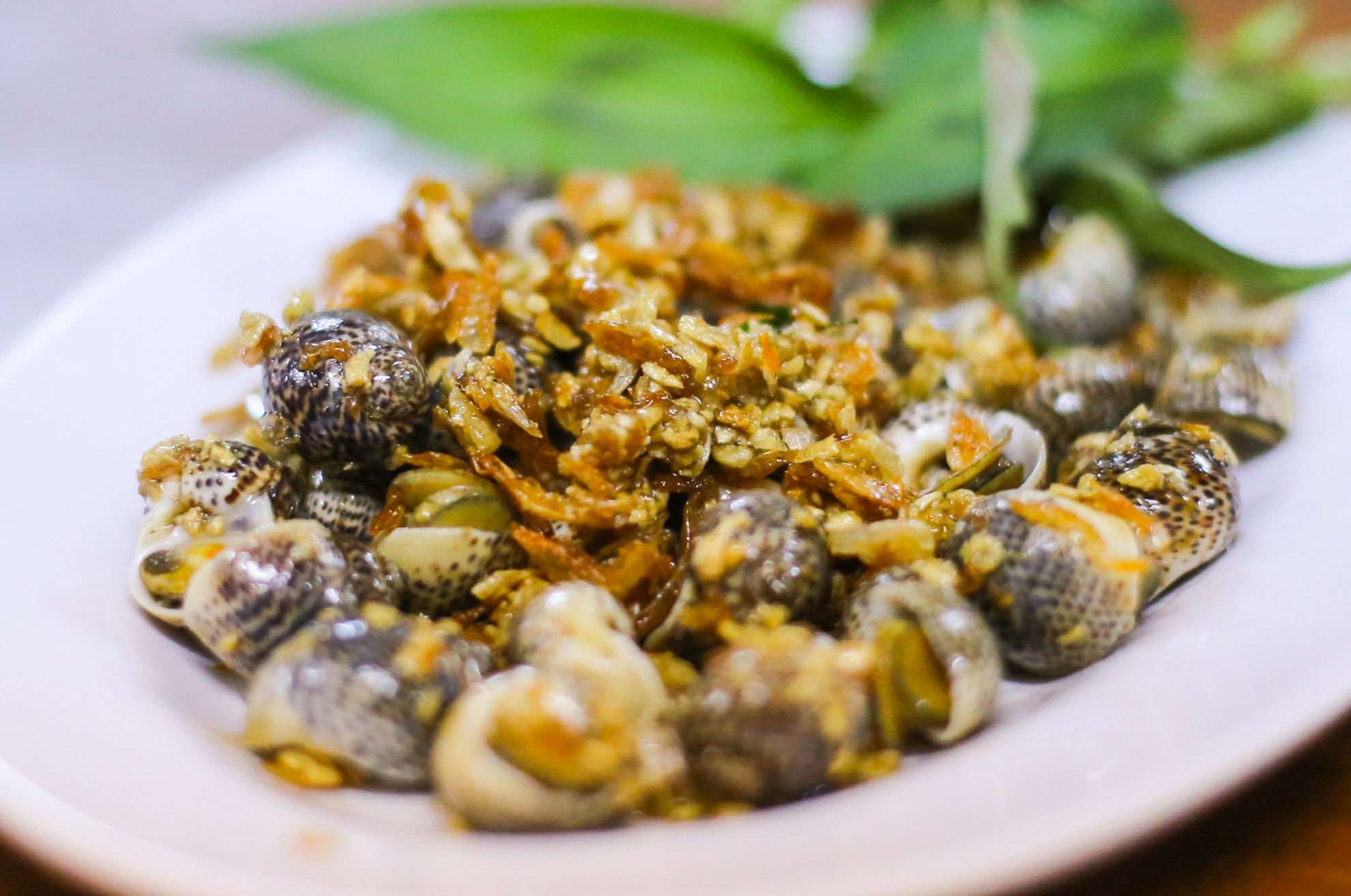 | Ốc khế rang tép ngoài vị dai, giòn của ốc là vị thơm, giòn, đậm của tép và tỏi. |