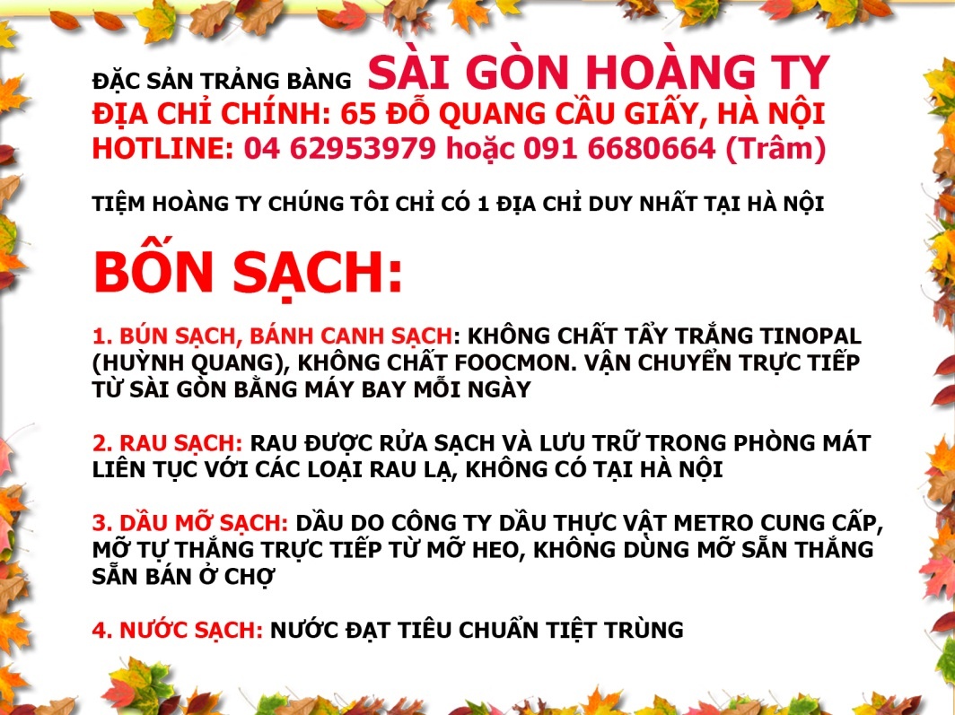 | Không chỉ cam kết đảm bảo về hương vị và hình thức món ăn, hệ thống nhà hàng Hoàng Ty còn được thực khách biết đến bởi luôn đảm bảo an toàn vệ sinh thực phẩm với tiêu chí bốn sạch. |