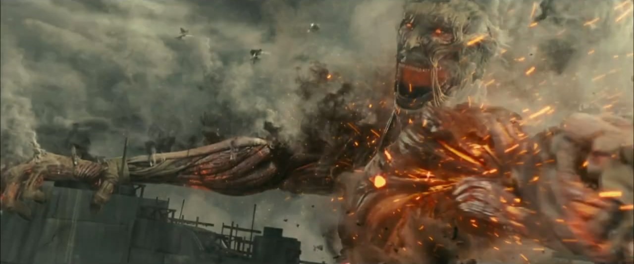 Một trong những trường đoạn ấn tượng nhất của bộ phim là cảnh Colossus Titan (Hộ pháp) vươn mình cao hơn cả bức tường thành, phá sập nó để mở đường cho đám Titan nhỏ hơn lũ lượt kéo vào. Cảnh quay thực sự choáng ngợp, mãn nhãn đúng như những gì các fan kỳ vọng.