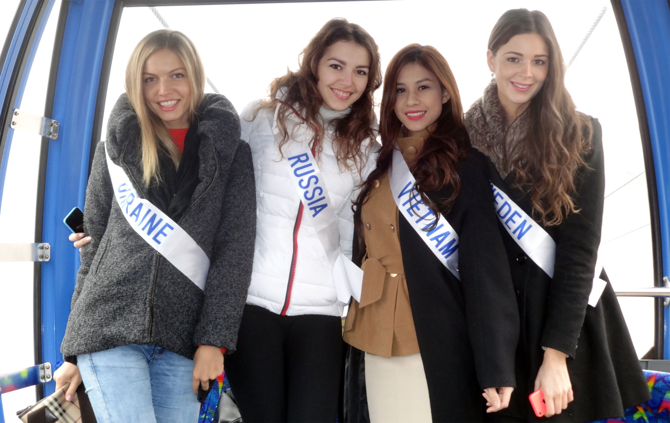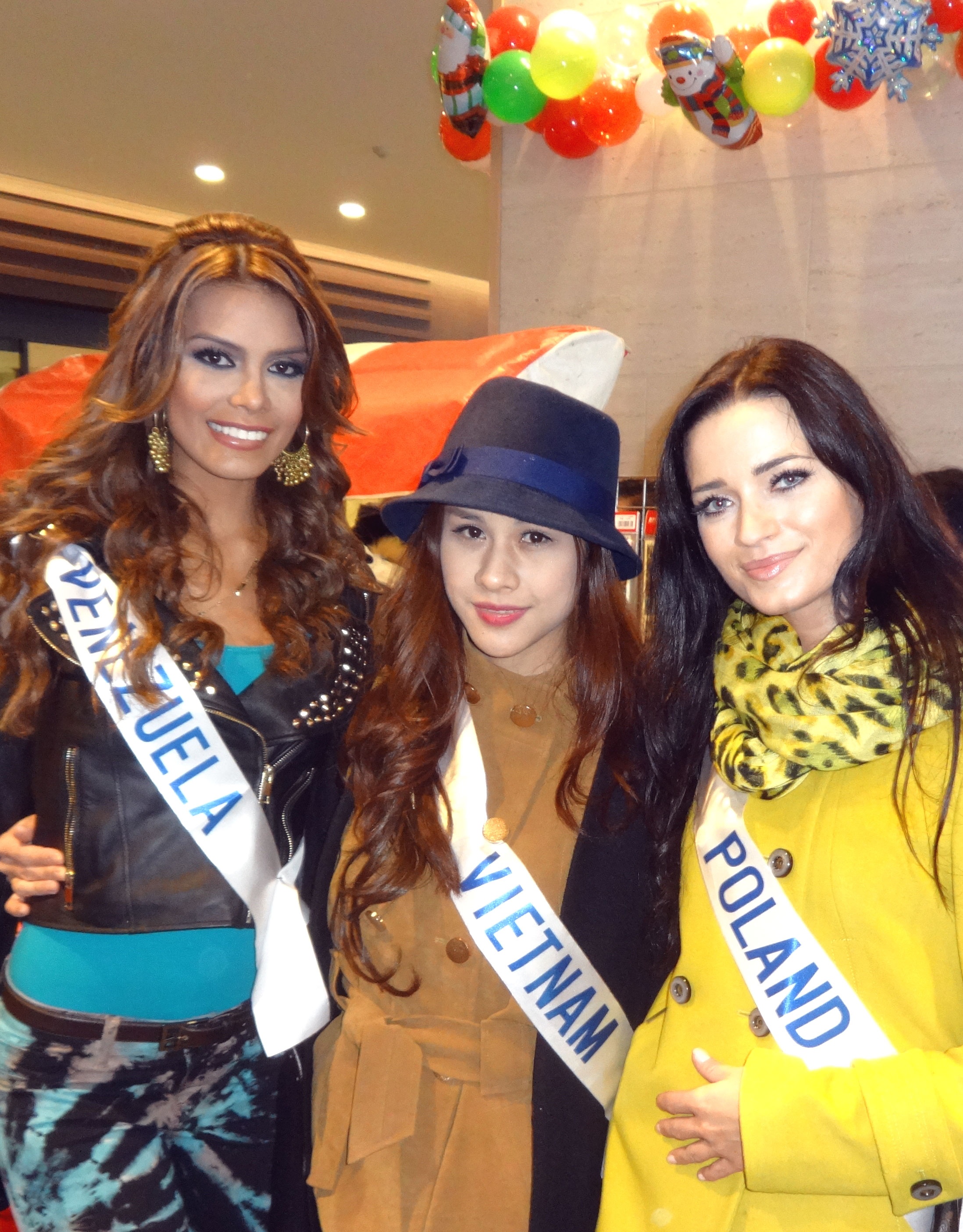 | Hương Trâm nhanh chóng làm quen, kết bạn, chụp hình cùng đại diện của Venezuela. Khi đứng cạnh người đẹp có chiều cao ''khủng'' và ngoại hình nóng bỏng, Hương Trâm hoàn toàn lép vế về nhan sắc lẫn vóc dáng. |