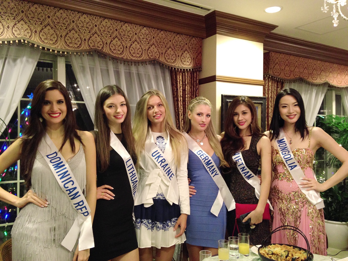 | Tối 7/12, các thí sinh dự bữa tiệc thân mật tại nhà riêng của chủ tịch Hoa hậu quốc tế. |