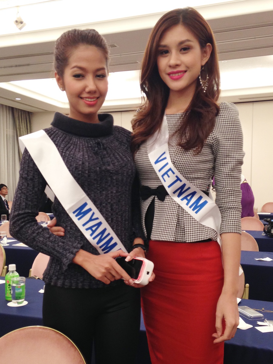 | Người đẹp Việt khá năng động và thân thiện khi làm quen với khá nhiều thí sinh như Anh, Thái Lan, Thụy ĐIển, Ba Lan, Trung Quốc, Macau, Nhật, Indonexia, Malaysia, Nam Sudan…. Được biết còn 1 số thí sinh các nước hiện chưa có mặt tại Nhật. |