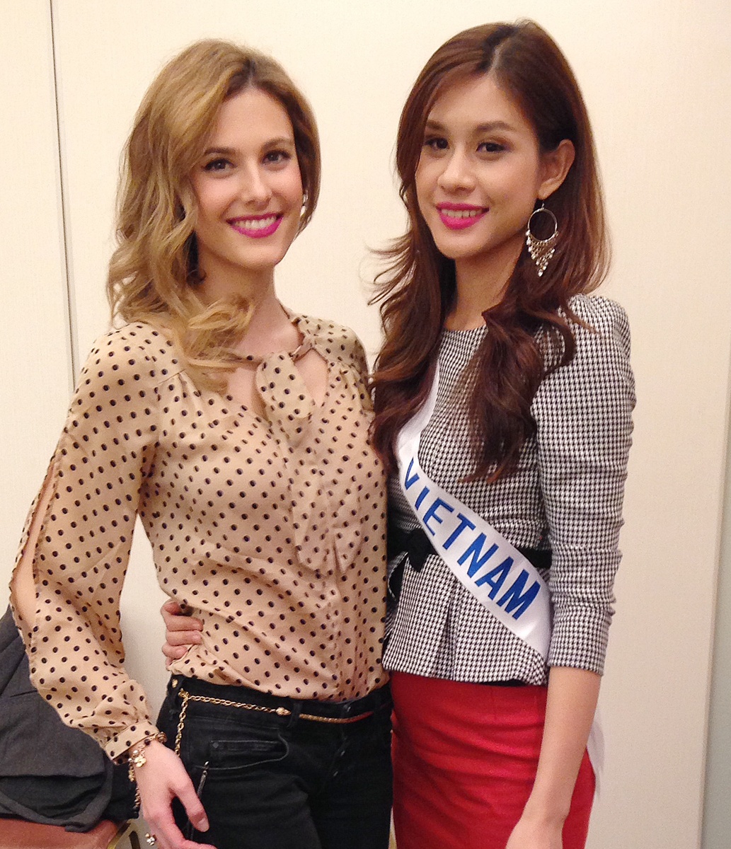 Hương Trâm chụp ảnh cùng đương kim Hoa hậu quốc tế 2012.