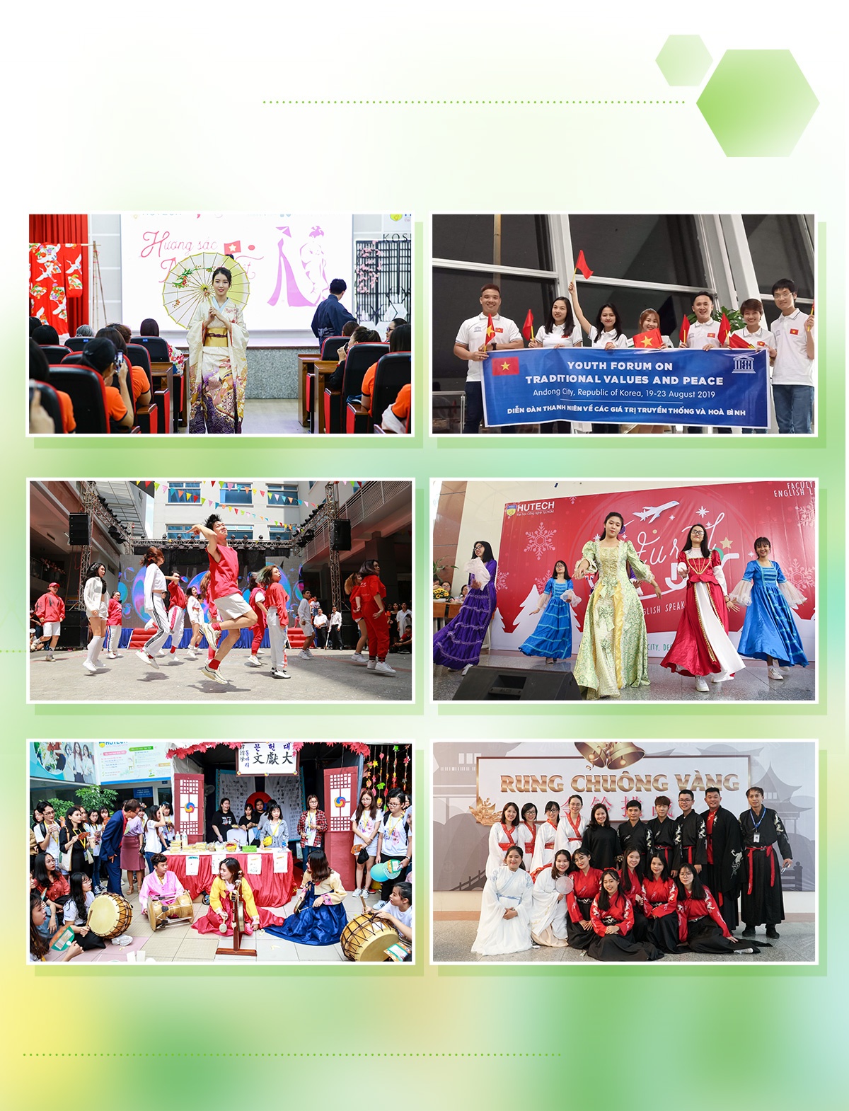 Nhiều sinh viên ví trường là một thế giới thu nhỏ. Đến đây, họ có thể “du lịch” đến nhiều quốc gia để trải nghiệm các giá trị văn hóa lâu đời như nghệ thuật xếp giấy Origami, cắm hoa, trang trí mặt nạ Hahoe, thưởng thức trà đạo…