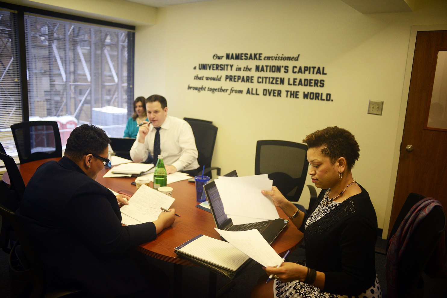 | Cán bộ tuyển sinh Đại học George Washington xem xét bảng điểm và bài luận của thí sinh. Ảnh: Washington Post. |