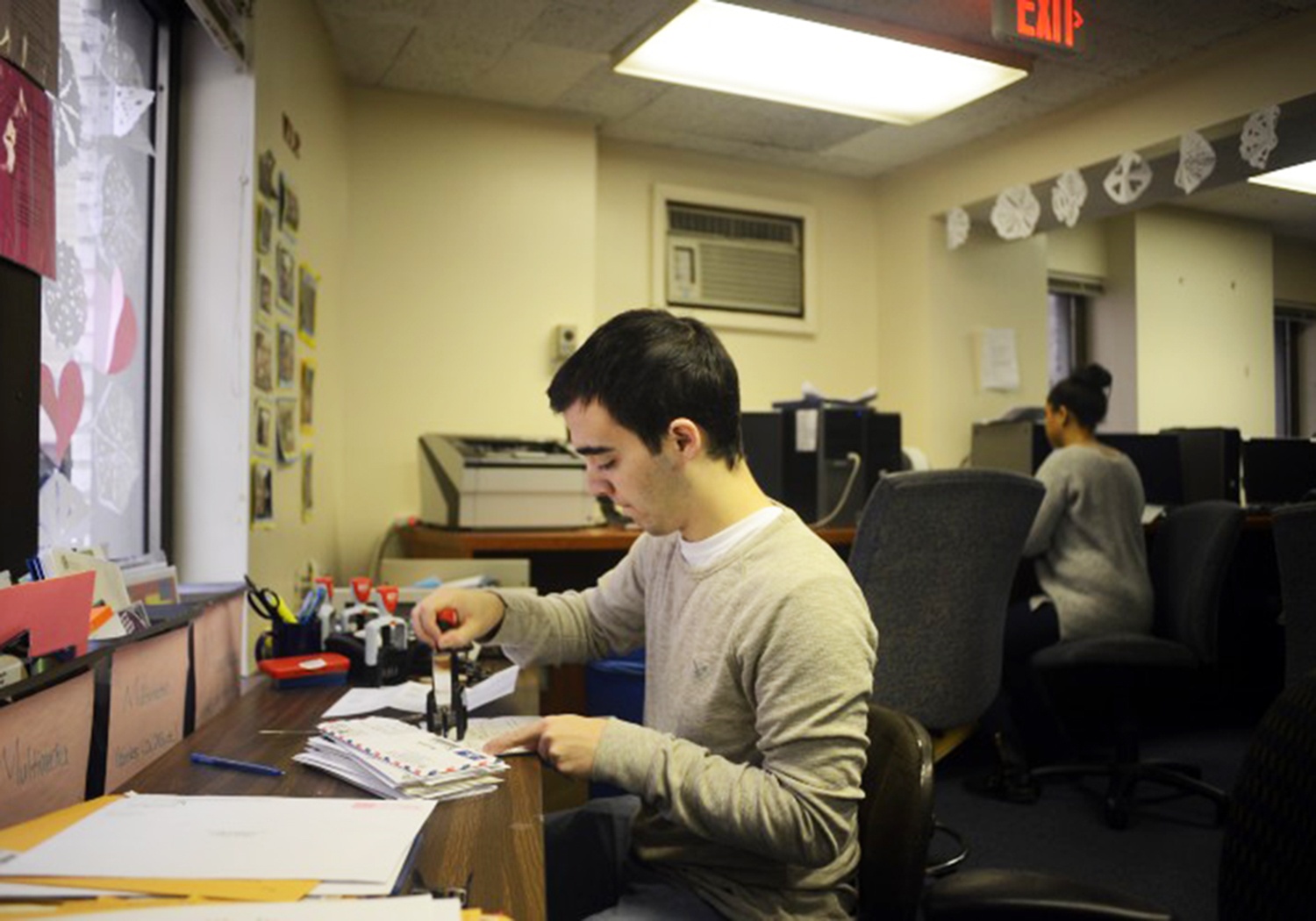 Cán bộ tuyển sinh Đại học George Washington đọc thư giới thiệu trong hồ sơ ứng tuyển của thí sinh. Ảnh: Washington Post. |