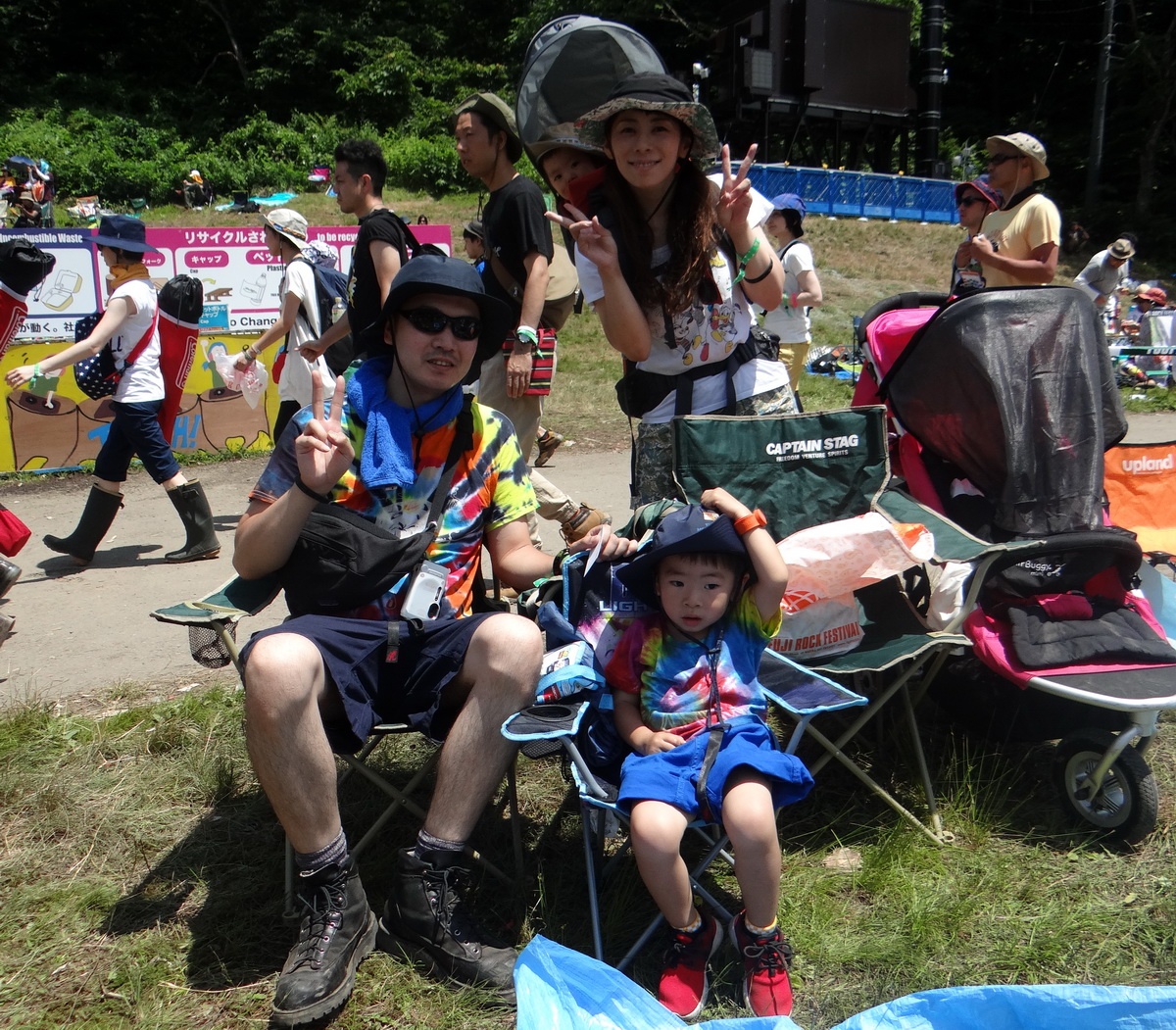 Đối với một bộ phận khán giả, họ coi Fuji Rock Festival như một cơ hội để nghỉ ngơi, chứ không đặt nặng vấn đề âm nhạc. Một số sẵn sàng đem cả gia đình và con nhỏ tới vùng núi Naeba. Vợ chồng anh Tatsuya và chị Yuka là một ví dụ. Họ mang cậu con trai ba tuổi và bé gái mới 11 tháng tuổi tới Fuji Rock Festival 2015. |
