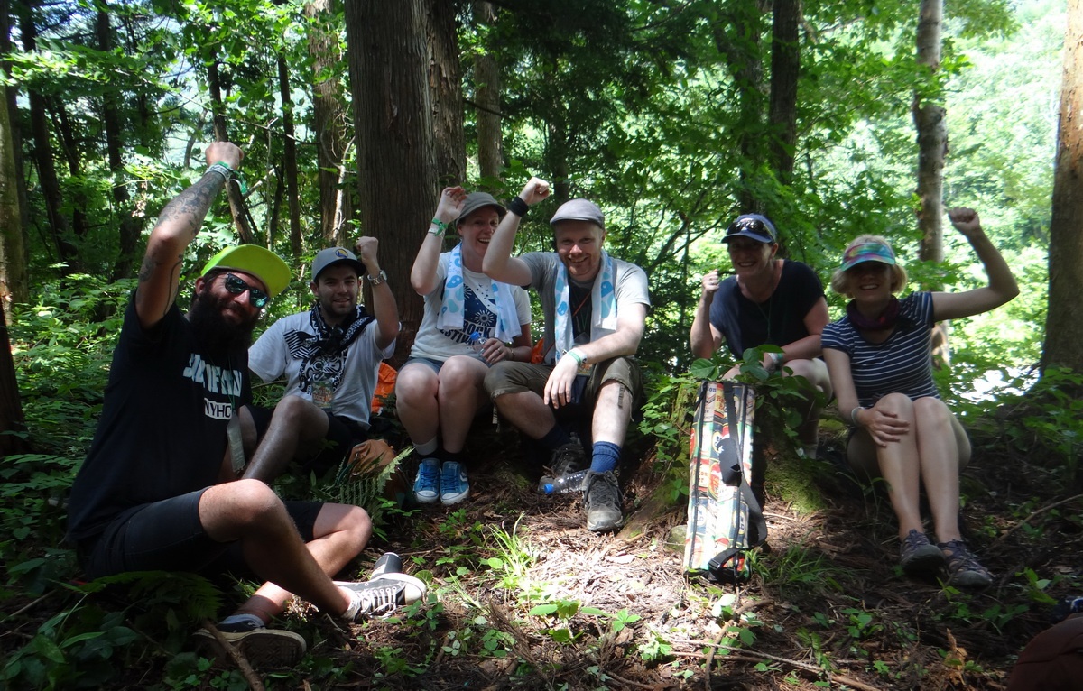 Theo ước tính, có khoảng 25% người tham dự Fuji Rock Festival mỗi năm là người ngoại quốc. Chị Kim Schultz (thứ hai bìa phải) đến từ Australia và nhập hội cùng những người bạn mới là người Anh và New Zealand. |