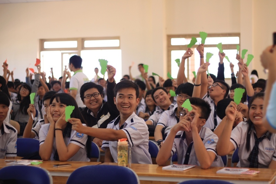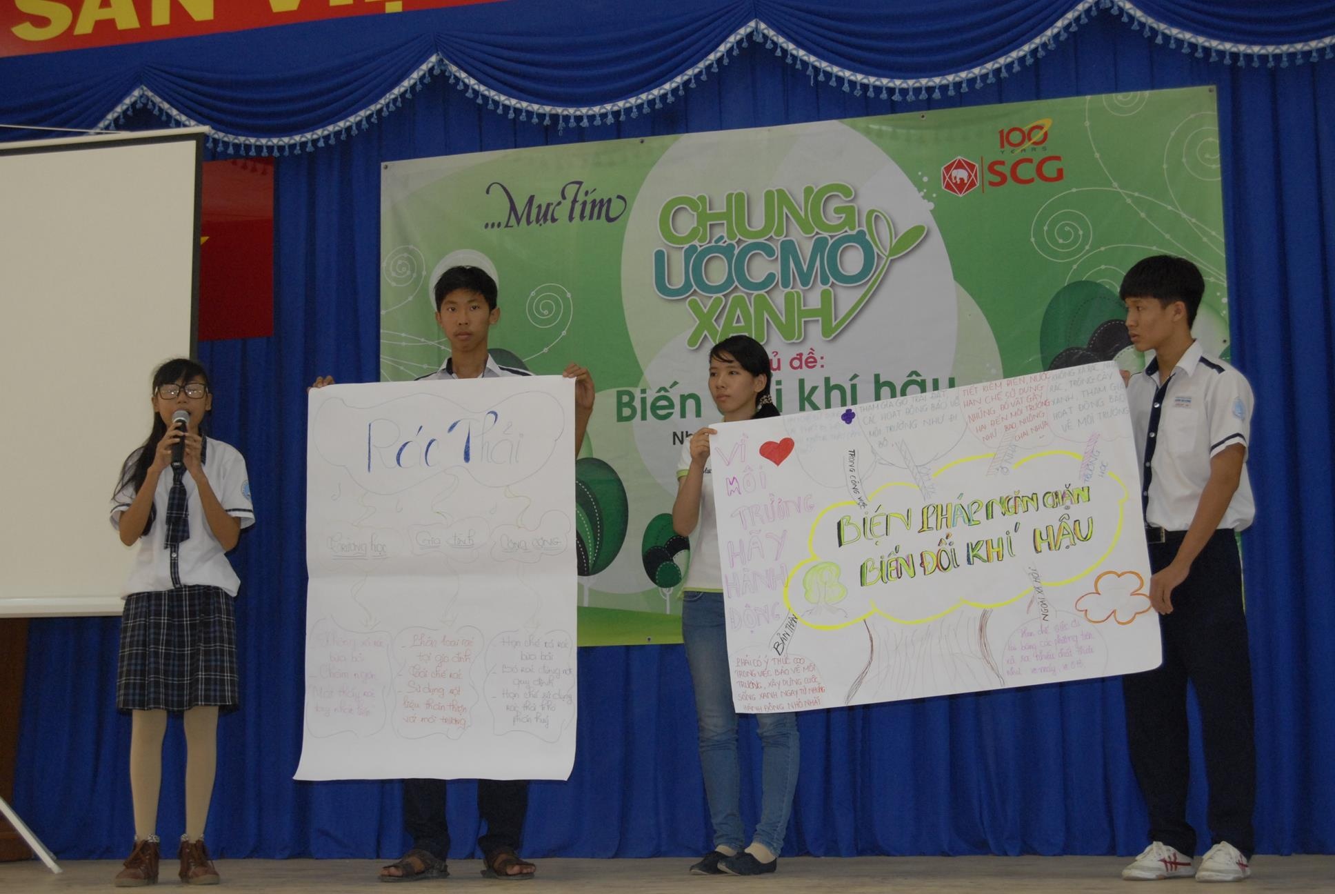Sau những hoạt động ý nghĩa, giàu tính thực tế như tham quan vườn rau sạch, quan sát quy trình phát triển bền vững ở nhà máy giấy, tham các hoạt động, trò chơi về giá trị sống xanh…, lần này các đại sứ đã có cơ hội vận dụng những kiến thức ấy để truyền tải đến các học sinh của trường trung học Dương Văn Dương tại huyện Nhà Bè, một trong những nơi đang phải chịu nhiều ảnh hưởng từ biến đổi khí hậu nhất của TP. HCM. Đây cũng là chặng cuối cùng của chiến dịch Chung ước mơ xanh năm nay.