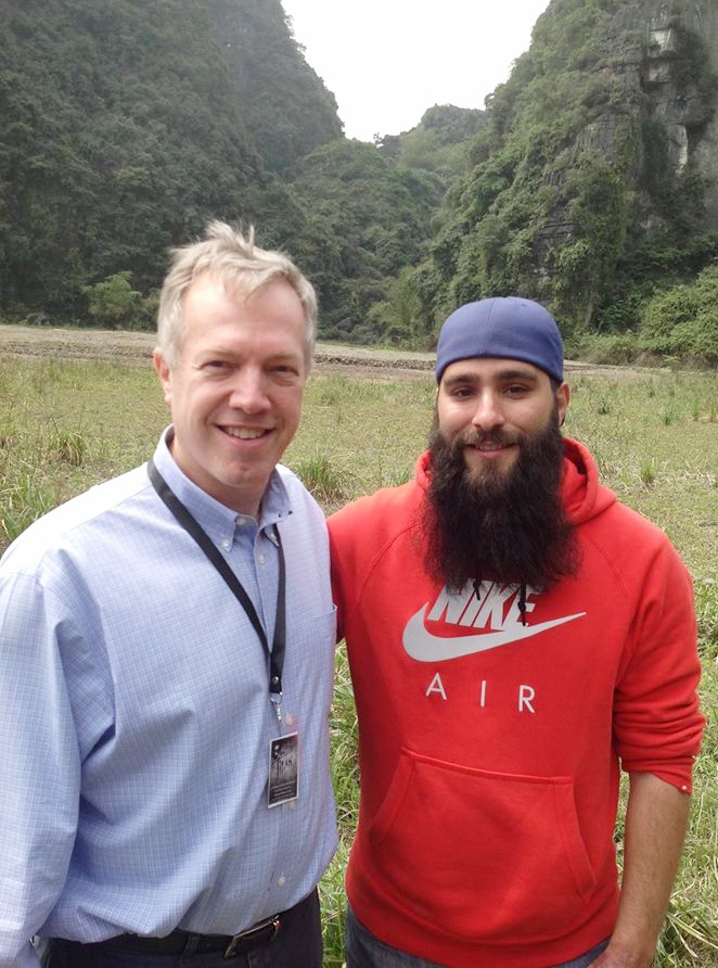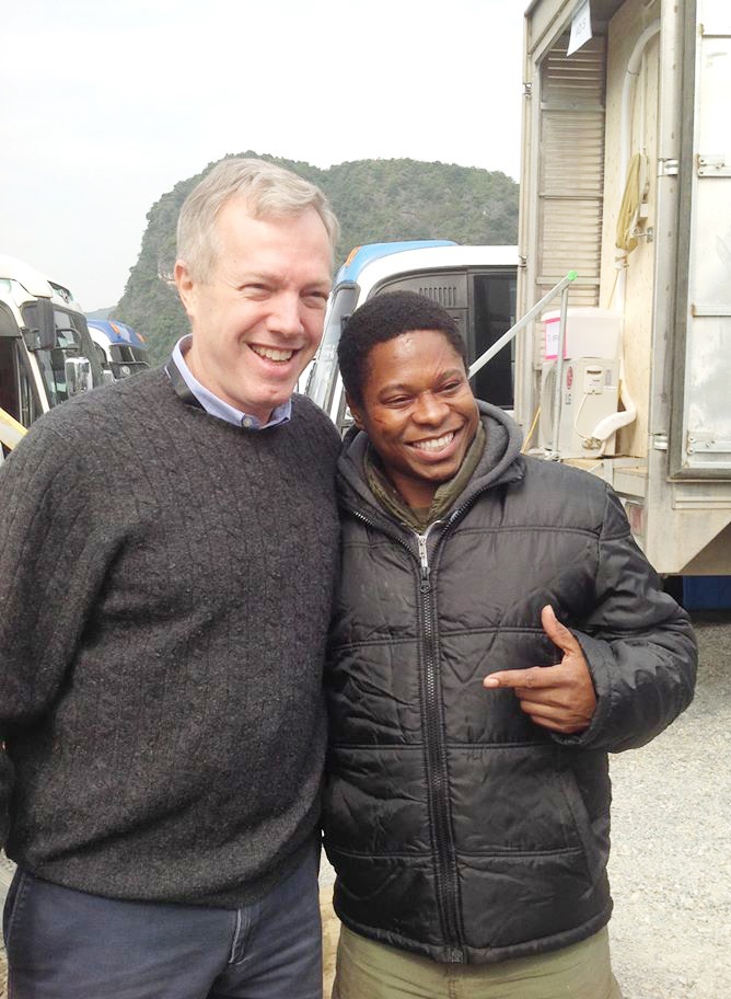 | Đại sứ chụp hình cùng đạo diễn Jordan Vogt-Roberts. Sau buổi thăm phim trường Kong: Skull Island. Ông