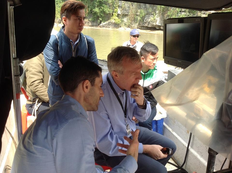| Sau khi thăm hỏi các diễn viên, Đại sứ được đưa vào khu vực hậu trường để xem một số cảnh phim vừa hoàn thành. Đại sứ dành nhiều lời khen khi thấy cảnh đẹp Việt Nam lên hình bom tấn Hollywood. |