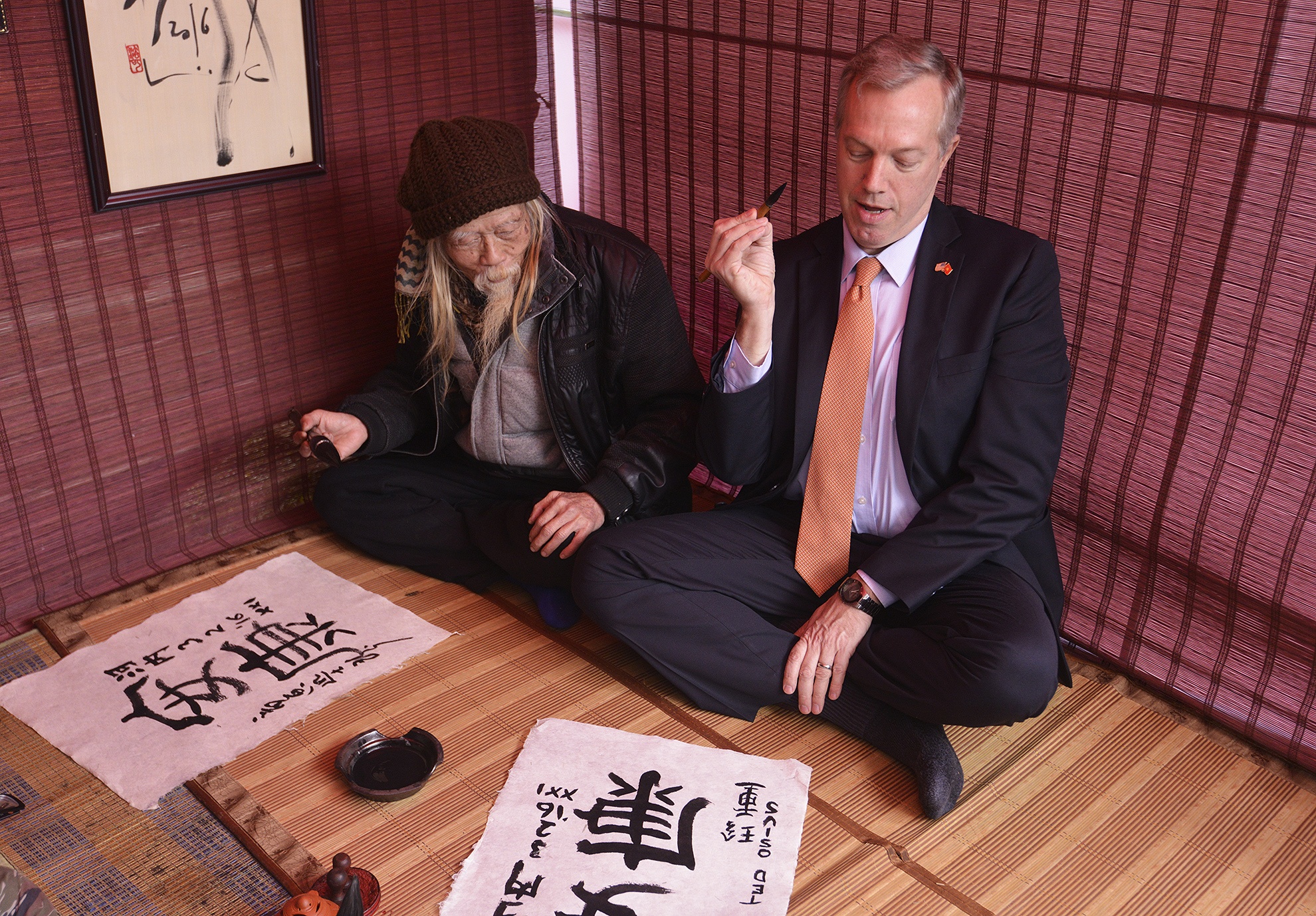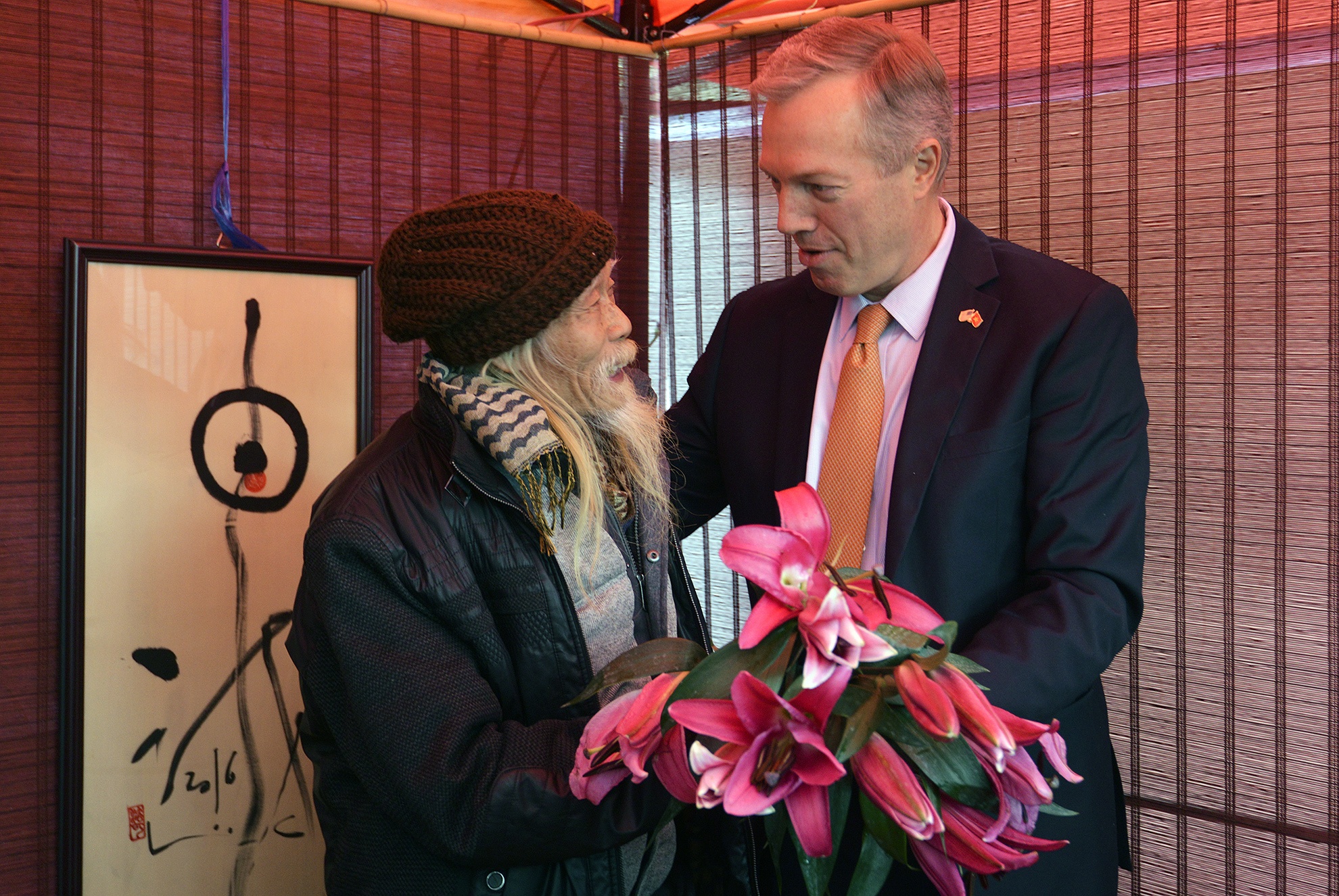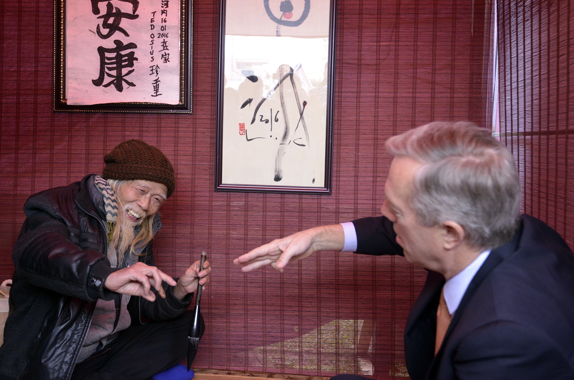 Tại Hồ Văn, Đại sứ Ted Osius được bậc thầy thư pháp Cung Khắc Lược đón tiếp và hướng dẫn ông viết chữ thư pháp. Trước sự kiện này, ông Osius đã được ông Cung Khăc Lược hướng dẫn cách viết chữ. Đại sứ Mỹ cho biết thư pháp chữ Nho rất đẹp và vô cùng ý nghĩa. |
