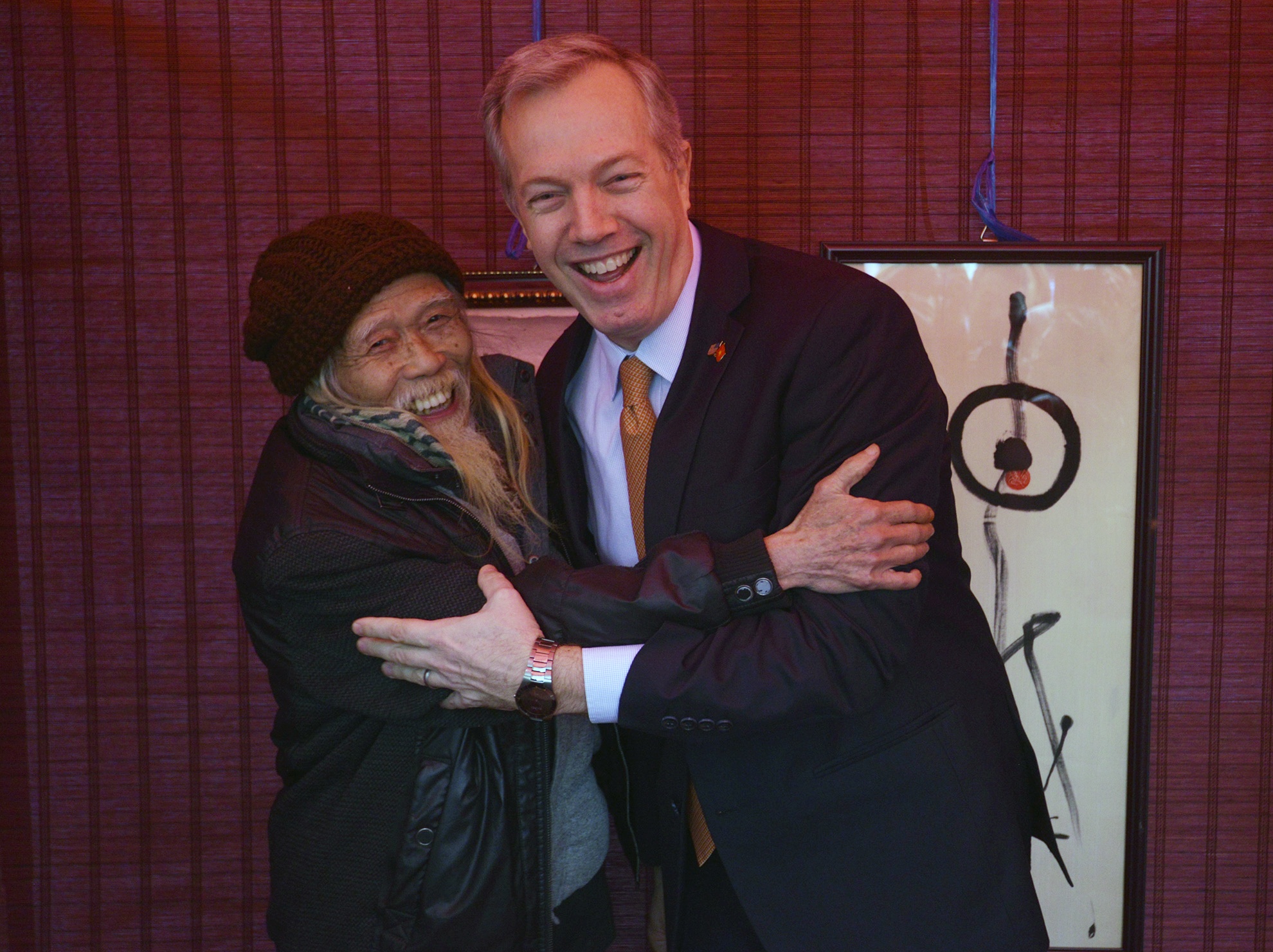 Ông Osius tặng hoa thầy Lược và nói lời cám ơn. Đại sứ Mỹ cũng gửi lời chúc một năm mới tràn đầy sức khỏe, hạnh phúc, an khang và thịnh vượng. Chúc riêng độc giả Zing.vn, Đại sứ Mỹ nói: “Tôi, bạn đời Clayton và cả gia đình chúc mọi người, mọi gia đình Việt Nam một năm mới an khang thịnh vượng, sức khỏe và hạnh phúc”. |